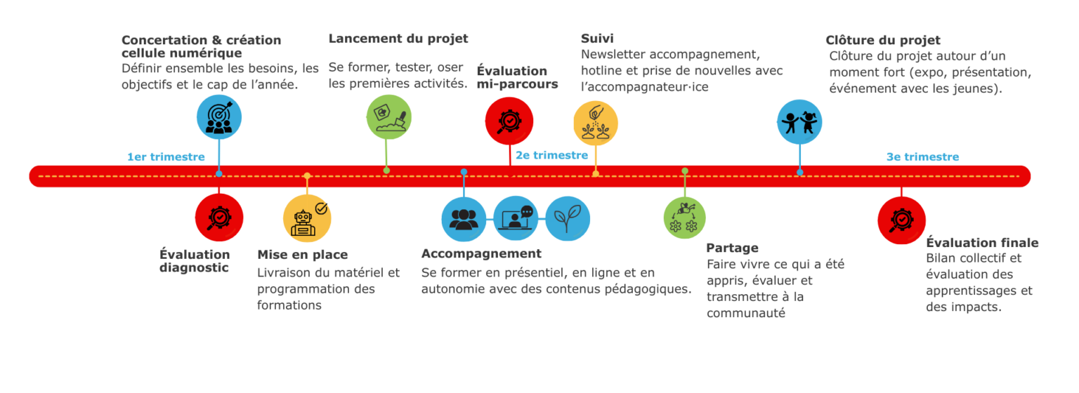 CodeNPlay vous propose un accompagnement sur une année pour une intégration durable et innovante de projets numériques dans votre établissement.
